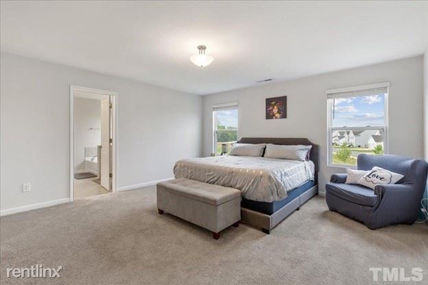 Discover 24 Nolan Court, a modern and inviting residence in the rural town of Lillington, NC. This 4-bedroom, 3-bathroom home combines contemporary design with comfort. The open concept living area connects the living room, dining area, and stylish kitchen with modern appliances and ample storage. The master suite features an ensuite bathroom and spacious closet. Outside, enjoy the sizable backyard and attached garage. Conveniently located, this property offers close proximity to downtown Lillington, Campbell University, and is only 35 minutes from downtown Raleigh and Fort Bragg. Embrace the charm of rural living without sacrificing easy access to urban amenities. Welcome to your new home at 24 Nolan Court. Application: https://www.hemlane.com/listings/24-nolan-court-lillington-nc-27546/265e7bd0-8d8e-4075-927e-a69e8c4d8905 (RLNE8093242)